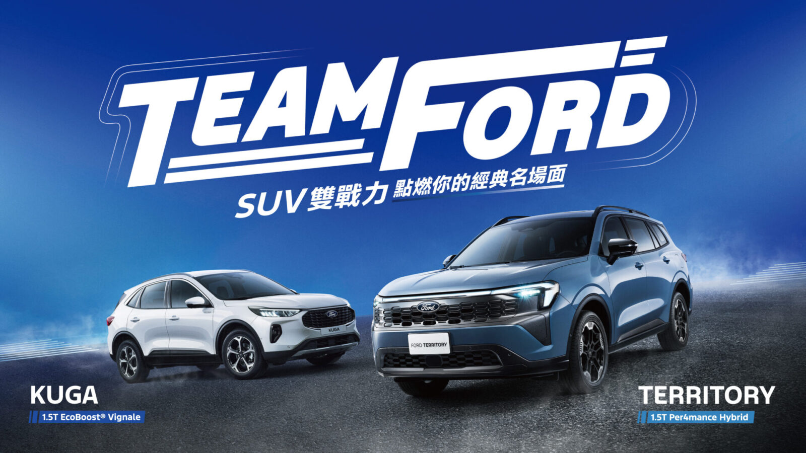 新年駕馭新氣象,福特六和限時推出「TEAM FORD SUV雙戰力#點燃你的經典名場面」期間限定活動,邀請各位體驗「TEAM FORD SUV」New Ford Territory與New Ford Kuga雙重產品魅力!自即日起至2月28日止,至全台Ford展示中心完成Ford Territory與Kuga雙車系試駕活動,即可獲得「國際賽車體驗之旅」(行程價值新台幣10萬元整含稅)抽獎資格乙次,最大獎有機會親臨F1 2026新加坡站或日本站,感受世界頂級賽事的極速魅力!(詳細活動規範以Ford官方網站所公佈之訊息為準)。