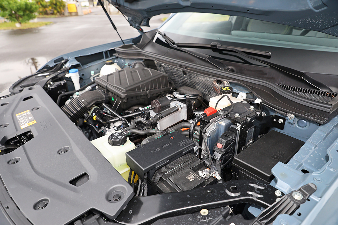 因此,全新Territory身上所搭載的1.5T Per4mance Hybrid四電驅渦輪油電系統,在專屬油電渦輪引擎以及雙速油電變速系統下,再搭配P3 Motor(驅動電機217ps/32.1kg-m)與P1 Motor(發電電機129ps)以及冷媒直冷的1.83 kWh三元鋰電池組,同時在具備深度米勒循環、13:1高壓縮比以及350bar高壓燃油噴射與43.52%高熱效率等技術下,可釋出245ps與55.6kg-m綜效最大馬力及扭力,平均油耗更可達20.0km/L,綜效續航里程可破1,000km,有著性能與節能兼具的出色表現。此外,也由於電池下置底盤,達到優化車身配重以及降低重心的作用,因此更能帶來沉穩的駕馭感受。