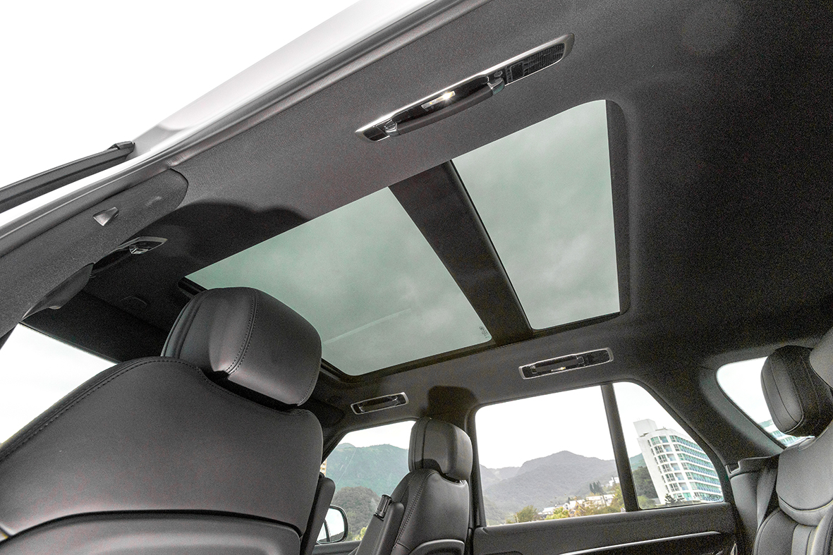 動力部分,此限定版搭載一具Ingenium 3.0升直列六缸渦輪增壓汽油引擎,並搭配48V輕油電系統以及ZF 8速手自排變速箱與四輪傳動系統,擁有400hp、56.1kgm的最大馬力及扭力輸出,0~100km/h加速僅需5.6秒,極速則可達242km/h。實際上路後,輕盈的步調超乎所預期,儘管這是部5米多且重達2379kg的大傢伙,但整個加速表現雖稱不上強悍,但還是相當夠力且順暢,絲毫沒有重拖或慢半拍現象發生,尤其隨著轉速的攀升,加速力道亦更趨渾厚飽滿,加上變速箱靈敏且迅速的搭配以及56.1kgm高扭力的助陣,讓整個加速反應都能帶著運動風格供驅策,甚至大腳油門後所伴隨而來的貼背感更是令人大呼過癮,5.6秒的加速實力果然不容小覷。