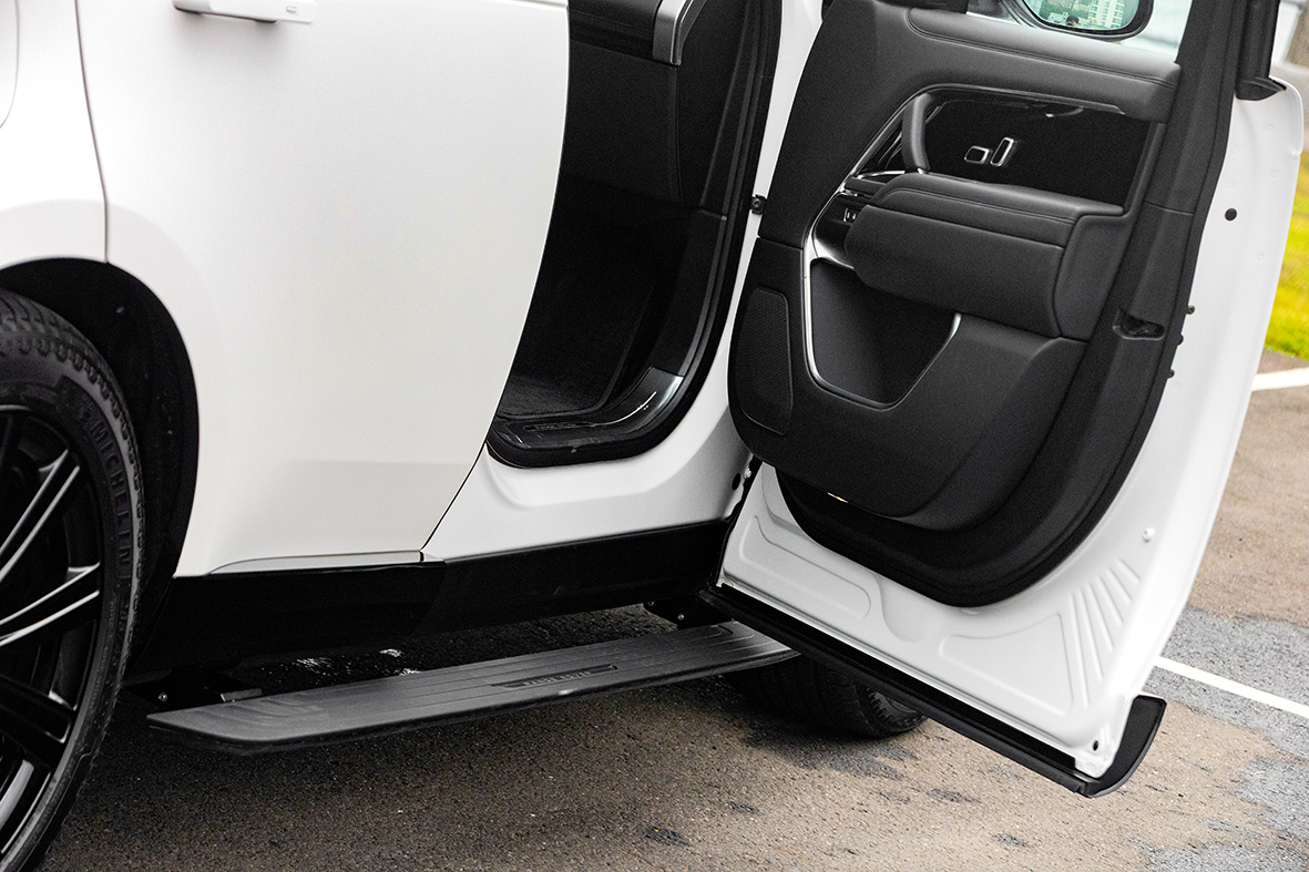 這款Range Rover 2025 Limited Edition限定版本,是以Range Rover P400 SE SWB為基礎所打造;外觀部分特地選用了「Ostuni Pearl White珍珠白」頂級金屬漆、並搭配「暗影外觀套件」,尤其運用了石墨色巧妙地點綴全車的外觀飾條,於高雅潔白得車身之上,勾勒出高級與沉穩的大器風格。此外,也加選了 22吋10輻式亮澤黑色輪圈以及黑色煞車卡鉗,造就出氣勢非凡的視覺姿態。除此之外,於車身兩側更輔以尊榮的隱藏式「電動側踏」,在車門開啟之際時優雅放下,為乘員提供輕鬆愜意的進出過程,亦營造屬於Range Rover專屬的尊貴與不凡。