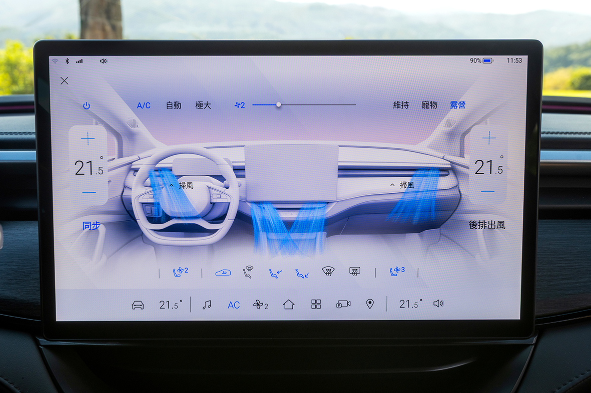 此外,車艙也配備了多項貼心置能設計,如電控式出風口可精準調整氣流強度與方向,打造更舒適且符合個人習慣的座艙環境。其次,智慧語音控制系統也能透過自然語音辨識功能來實現直覺流暢的座艙控制;再者還有維持/寵物/露營等3種離車空調模式供車主便利使用,以及在UWB超寬頻通訊技術下的「無感解鎖」功能(近車即解鎖、離車即上鎖),甚至車主還能透過智慧車聯App即時監控車況、並遠端控制各項車輛功能。其他諸如64色環艙氣氛燈、360度環景影像系統、全景玻璃天幕、SEAS音響系統(12支揚聲器)、遙控停車輔助、感應式電動尾門以及V2L車外供電功能與Lv.2智慧安全駕駛輔助系統等,皆為Emerge車型的標配。