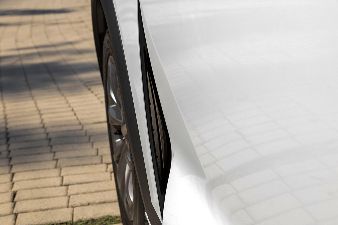 屬於中小型跨界休旅級距的Bria,其車身尺碼為4315x1885x1535mm,軸距達2800mm,整個身形與線條設計既緊湊且俐落,甚至在十足科技氛圍中帶有小鋼砲的性能氣勢,尤其整個車身經過精密的空氣力學設計,除了藉由每處線條的雕琢來達到全車氣流管理的優化之外,更透過車頭前緣的S-Duct導流以及車側導流孔與D柱的Air Curtain氣簾等空力設計的搭配運作,來達到降低空氣阻抗、並提升能源效益的目的,而這也使其風阻係數僅為0.26Cd,十分有助於強化續航里程的表現。再者,Bria的車頭與車尾皆擁有科技感十足且相呼應的貫穿式定位燈與尾燈組設計,尤其還有3組迎賓燈與燈光秀展演,相當生動有趣。