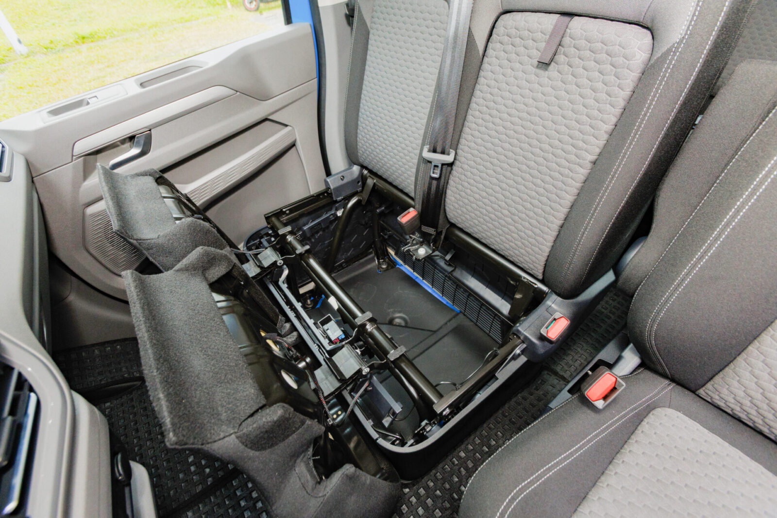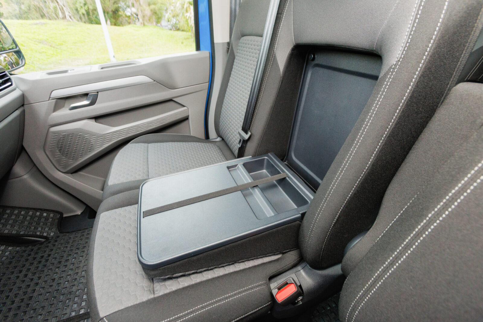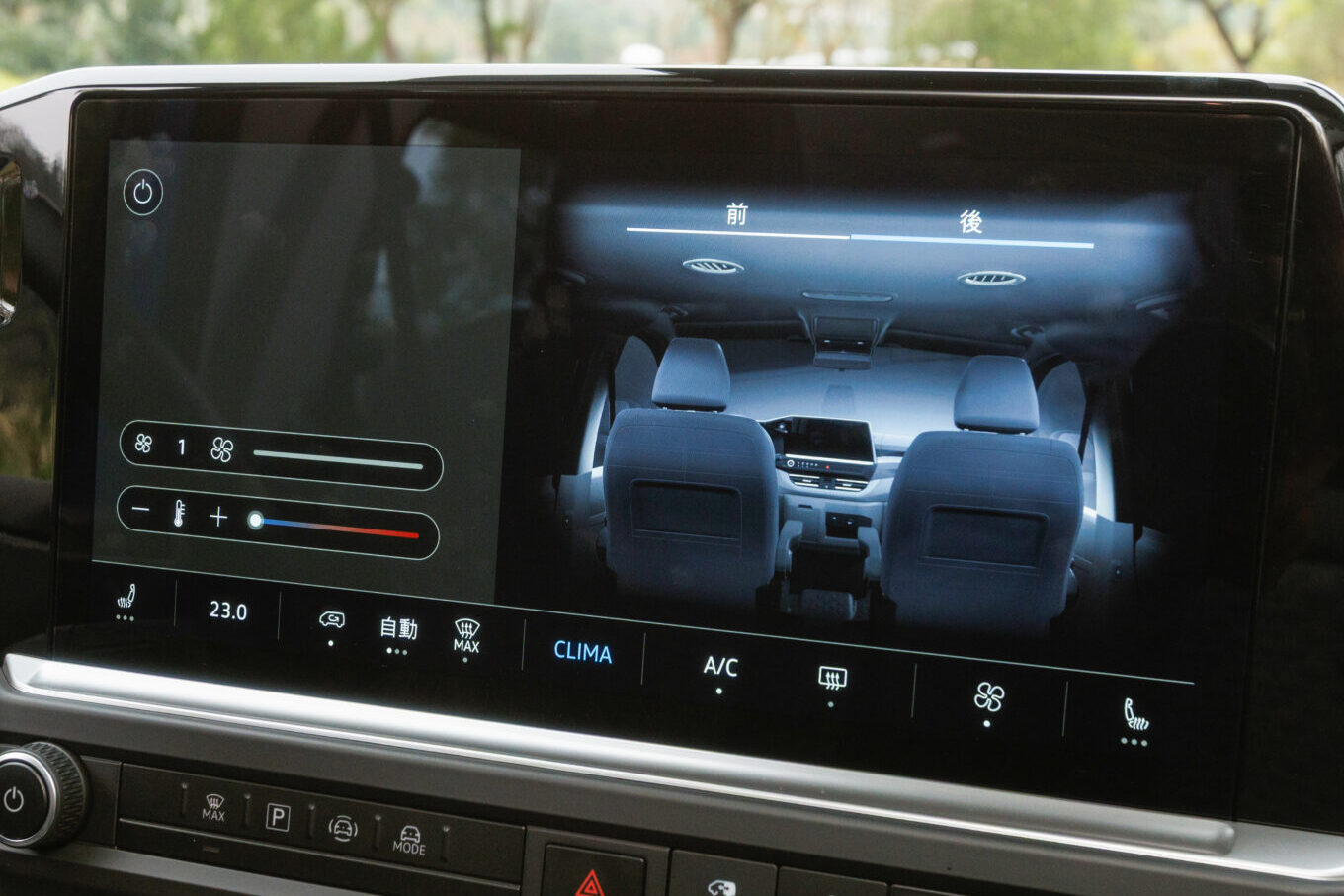 在內裝鋪陳方面,全新T7 Caravelle迎合時下數位化潮流,全車系標配12吋數位儀錶與13吋中央觸控多媒體主機,同時在控檯中央與方向盤快捷鍵等處均保留實體按鍵設計,即使行進間也能快速調整多項功能、不需要所有控制都透過觸控螢幕完成;而在T系列商旅車款強調的實用性方面,新車保留控檯前端的開放式置物槽設計,副手座前方亦提供上下雙層手套箱,此外在控檯下方則規劃有折疊式置杯架、整合USB-A、C雙充電孔與12V電源的內崁式置物槽,兼顧收納機能與前座橫向移動的便利性。