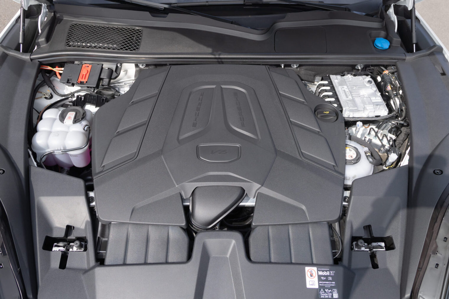 三代小改款Cayenne E-Hybrid同樣搭載3.0L V6渦輪引擎,不過或許是為了進一步提升整體節能表現,最大輸出由舊款的340hp/45.9kgm下修至304hp/42.8kgm,相對地,新車換上功率更高的新型電動馬達,最大輸出從過往的136hp/40.8kgm提升到176hp/46.9kgm,因此綜效最大馬力反倒多出8hp為470hp,綜效扭力輸出則略為降低5.1kgm至66.3kgm,同樣透過Tiptronic S八速手自排變速箱驅策,小改款新車僅需4.9秒完成0~100km/h加速,以縮短0.1秒的成績證明整體動力效率的進步。此外,新車電池容量增加至25.9kWh,WLTP純電續航上看90公里,較舊款增加一倍有餘,同時也配備11kW車載充電器以縮短充電時間,不過新車未能升級支援DC快充仍讓人感到有些可惜,少了些在外臨時快速補能的使用彈性。