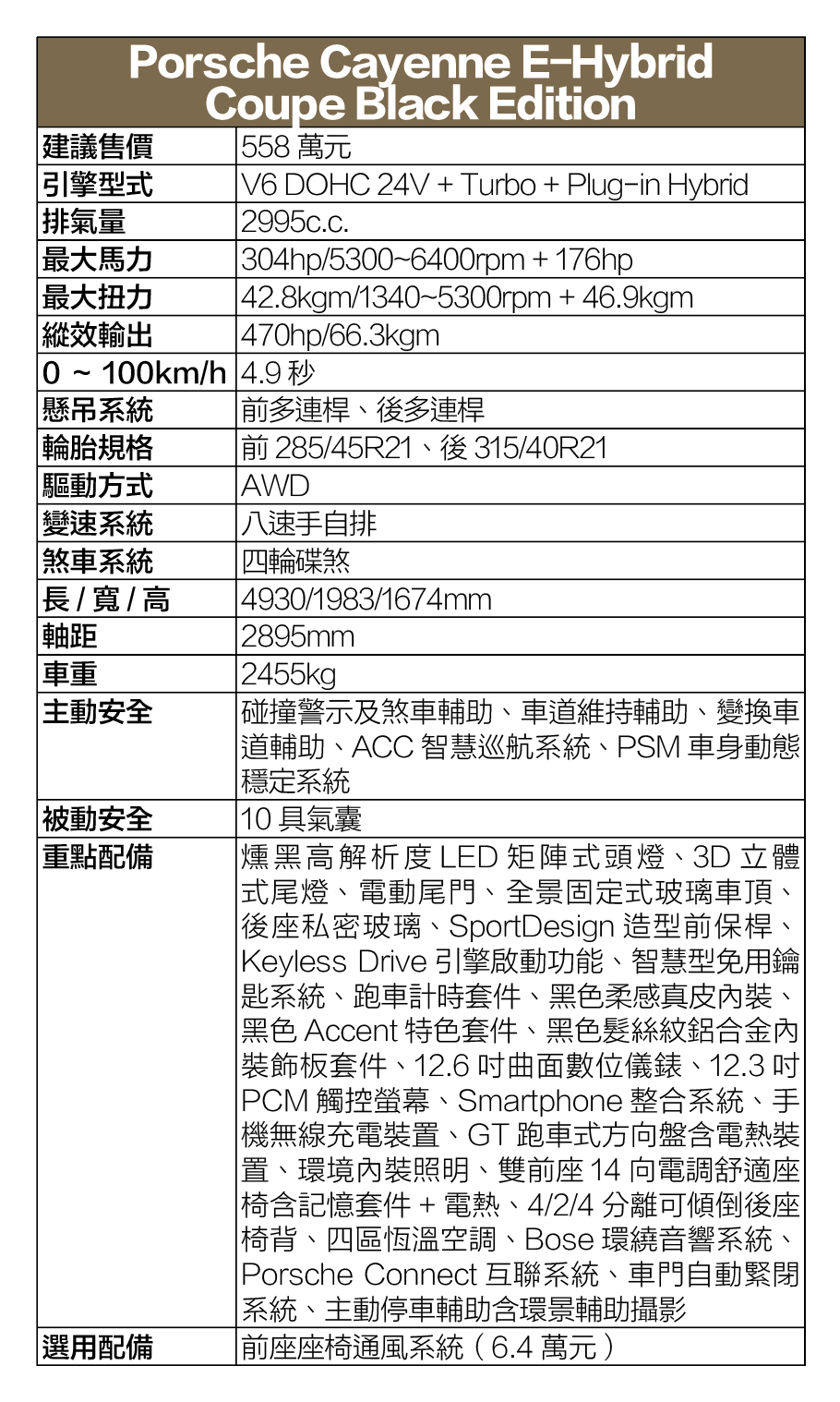 | Cayenne E-Hybrid Coupe Black Edition | 558 |