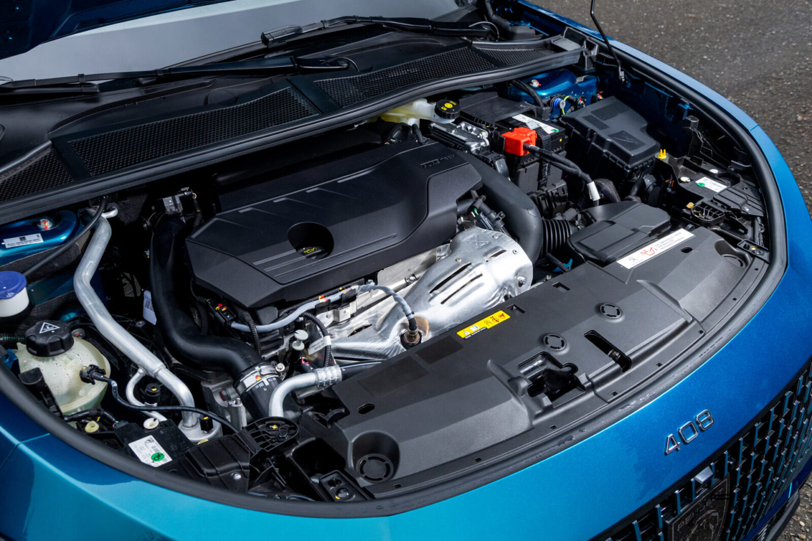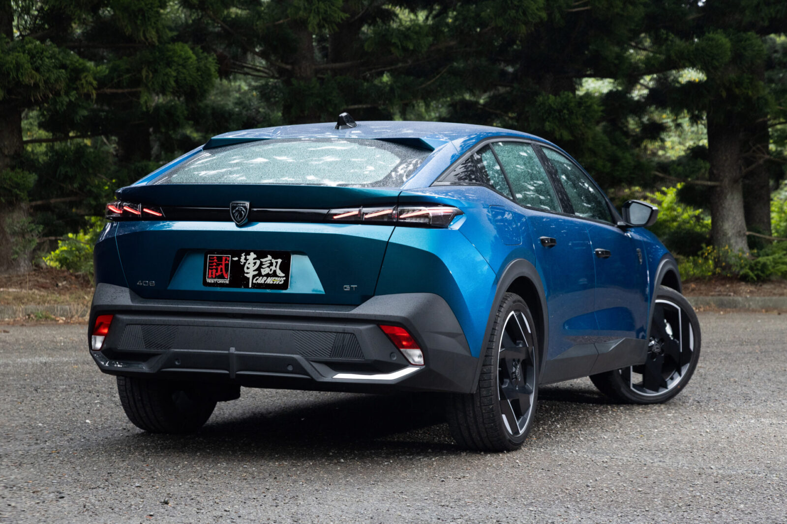 作為車系性能旗艦代表,新引進的408 GT Rapide並未刻意在外觀部分作出區隔,僅針對車門把手施以黑色高光澤處理,並換上國外市場多用於同為旗艦定位之Plug-in Hybrid插電式油電混合動力車型的20吋黑銀雙采鑽石切削輪圈。此外,由於本車採限量引進方式,僅提供此次試駕車的迷戀藍,以及雪獅白、珍珠黑三種車色選擇,無法選用P2 Hybrid車型的魅惑紅與月神灰。