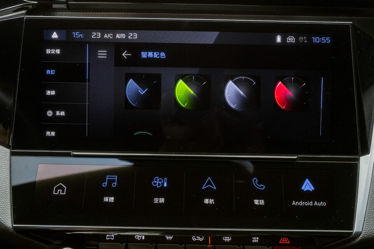 進入車室,Peugeot招牌i-Cockpit駕駛導向座艙依舊顯得前衛科技感十足,獨步車壇的3D Quartz立體投影式儀錶也同樣讓人再次讚揚原廠的設計巧思,利用前後層次與不同配色的組合,完美兼顧絢麗視覺效果與實際辨識能力。本車配備水準基本比照原有的頂規車型GT Premium Cielo,但取消前座兩側雙層隔音玻璃、尾門腳踢感應功能與TomTom導航系統,另追加Focal Hi-Fi頂級音響系統,透過10支揚聲器帶來更加清澈透亮的聆聽感受,同時全車座椅在維持雙前座多向電調/電熱/氣壓按摩等豐富功能之餘,亦升級採用Nappa皮革包覆,呈現國內消費者偏好的豪華質感。