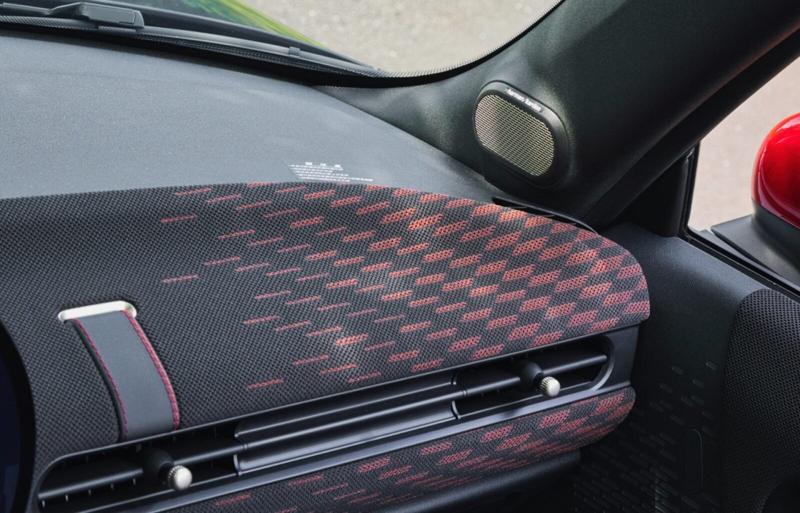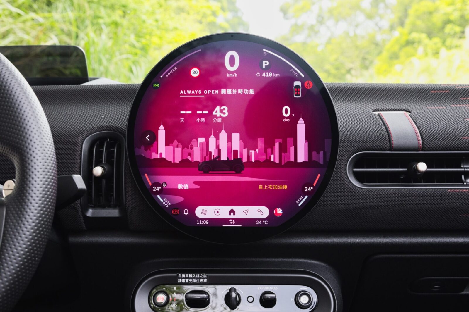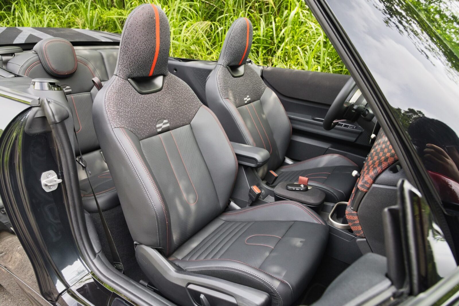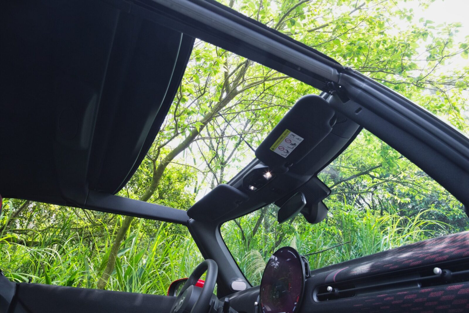 內裝部分延續三門掀背基礎,包括附有專屬銘牌與換檔撥片的JCW跑車式方向盤、採織布/皮質混搭與紅色縫線點綴的雙前座JCW賽車座椅,以及副駕處加入紅色方格旗圖樣的黑色織布面料控檯等配置全數保留,同時在圓形OLED螢幕中整合的Mini OS 9整合系統亦加入敞篷專屬的Always Open開篷計時功能,無論開篷馳騁的開心時刻或隨意切換的啟閉次數都在螢幕上一目瞭然;此外,即使身為高性能車款,本車依舊標配符合Level 2水準的ADAS駕駛輔助系統,長途行車時只要按下方向盤左側控鍵便能立即啟用ACC與主動車道維持輔助,還有結合12顆超音波感應器與4顆環視攝影鏡頭的全新自動停車輔助系統,在狹窄空間也能完成自動停車,帶來更為便利貼心的用車體驗。