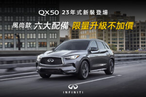 註 6:QX50 網頁請參閱以下網址:https://reurl.cc/bnWdMv,INFINITI TAIWAN保有隨時變更及解釋本專案之權利。