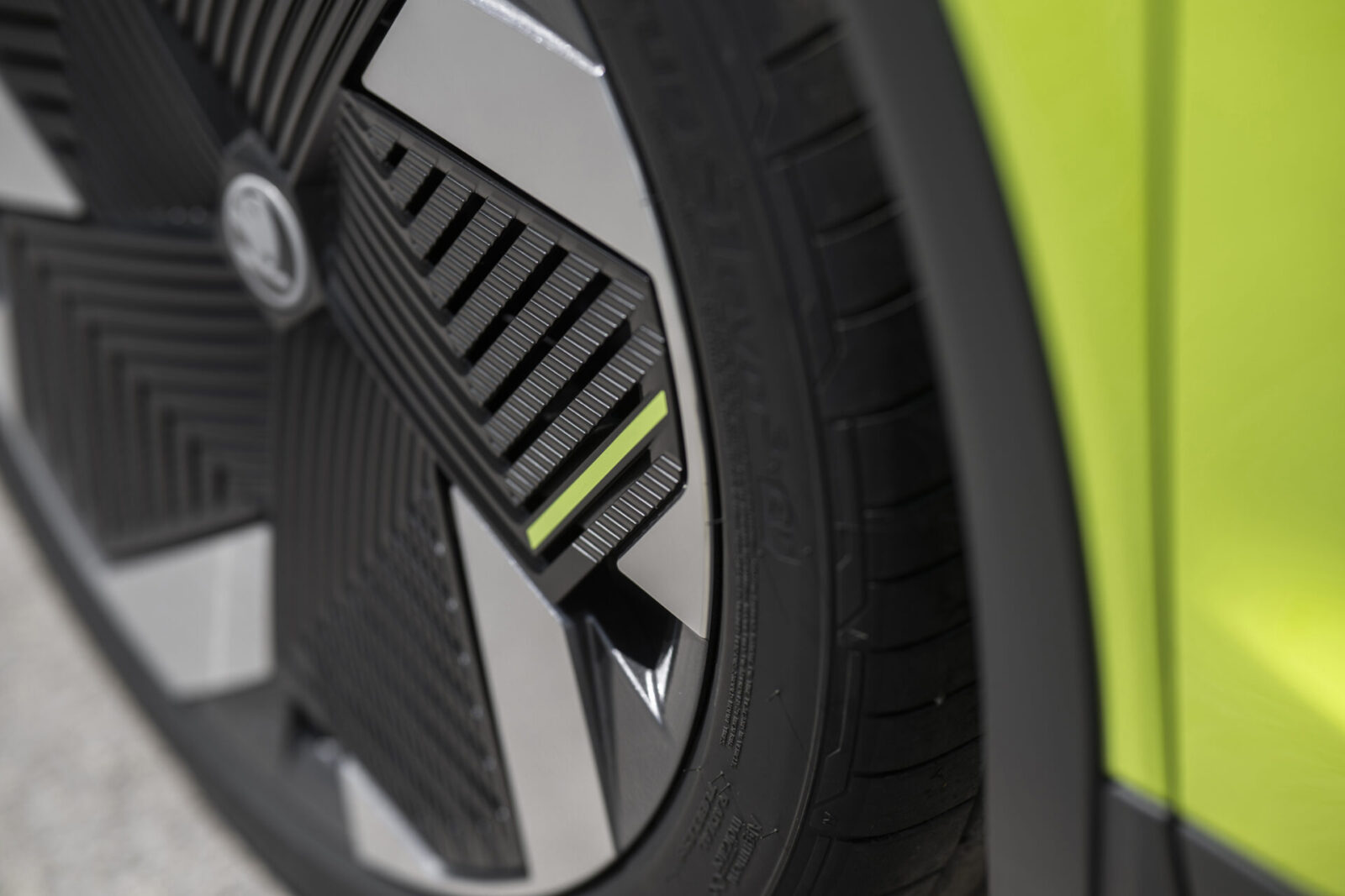 容量達到了84 kWh(可用電量為79 kWh),在WLTP測試標準下可以繳出540公里的續航里程,僅有0.267 Cd的風阻係數更是功不可沒。Elroq RS快充最高可以支援到185 kW,換句話說10~80%的電量補充僅需26分鐘即可搞定,倘若使用11 kW的交流電,可在8小時將電量重零補充至100%。 就跟每台Skoda RS一樣,Elroq RS對於操控也有著一定的堅持,直接標配DCC電子懸吊系統,帶來更為動感的駕馭體驗,當需要時,可以調整15段阻尼軟硬度的功能,讓車輛可以在舒適與運動之間自由切換,滿足不同情境的駕駛場域。不僅是DCC電子懸吊,Elroq RS還配備了專屬調校的漸進式轉向系統,使得轉向更為精準俐落。此外,與標準版車型不同的是,Elroq RS在前軸、後軸上都配置了防傾桿,強化車身剛性,對於操駕自然也是如虎添翼。