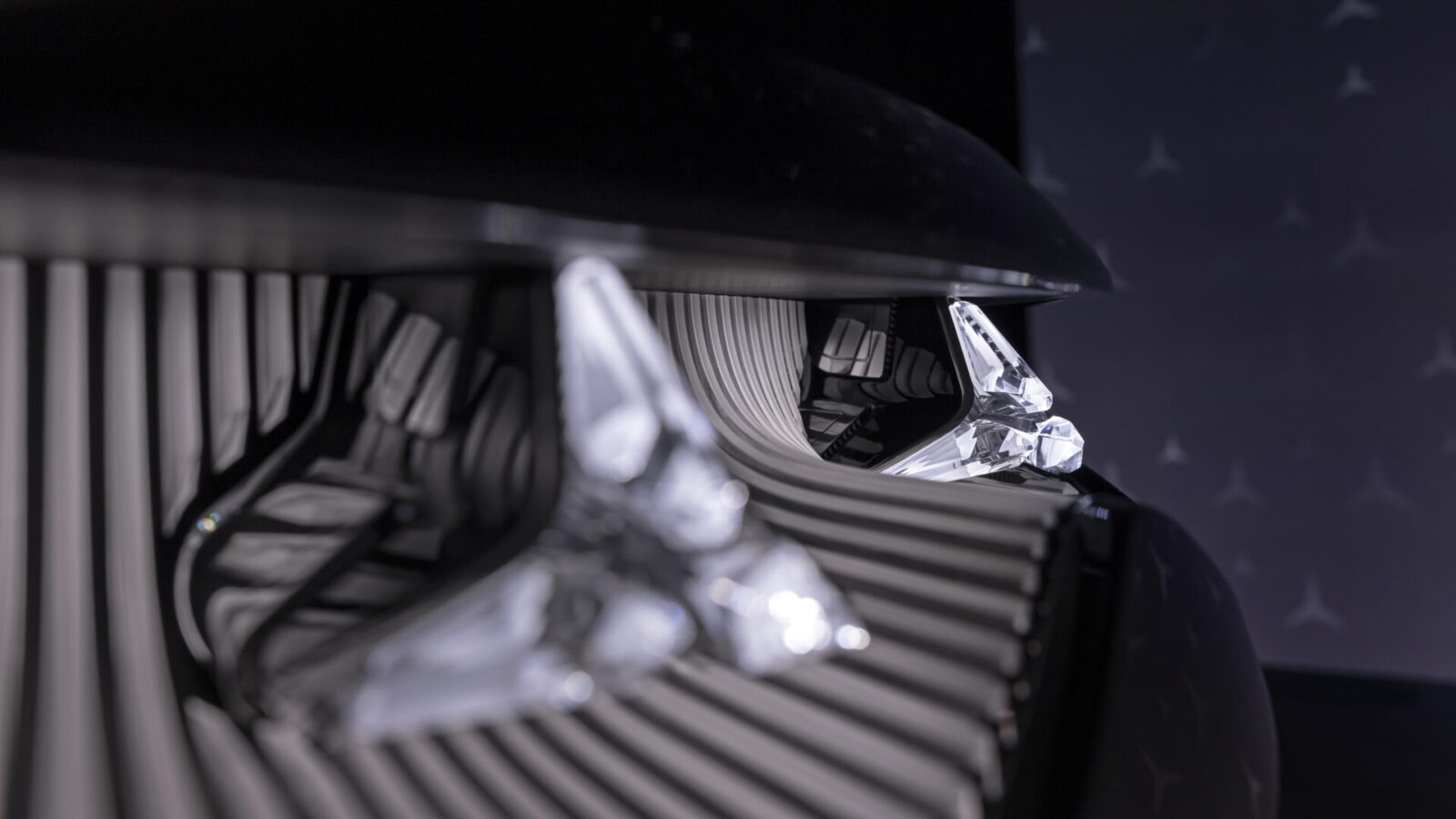 Vision V車頭造型相當有趣,整體的設計風格有些延續日前推出的最新CLA車系,除了貫穿式的LED日形燈外,水箱護罩也會同步發光,即便Vision V是純電身分,原廠依舊用LED打造出了大面積的水箱護罩飾板,就連內部格柵也是LED製成,搭配前保桿上的鍍鉻飾條,似乎想要復刻以往S-Class的視覺面貌。除了造型特殊之外,本次賓士也將品牌標誌性的三芒星廠徽融入了頭燈當中,展現出精湛的燈光工藝,再搭配具備發光功能的立標廠徽,營造出強烈的科技質感。