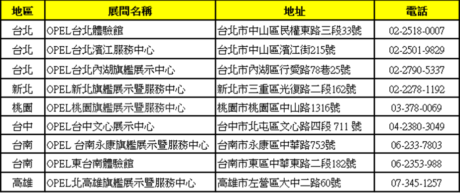- OPEL台灣總代理 歐吉汽車在七月九日於台北內湖旗艦展示中心,舉行OPEL COMBO發表會,同級唯一配備Intelli-Lux LED®矩陣式頭燈的全新長軸七人座/長軸五人座 MPV COMBO LIFE PREMIUM「旗艦七人座」、COMBO LIFE「五人座」正式開始販售。正式售價「旗艦七人座」為133.9萬元、「五人座」為126.9萬元,現在入主並加贈五年/15萬公里延長保固。