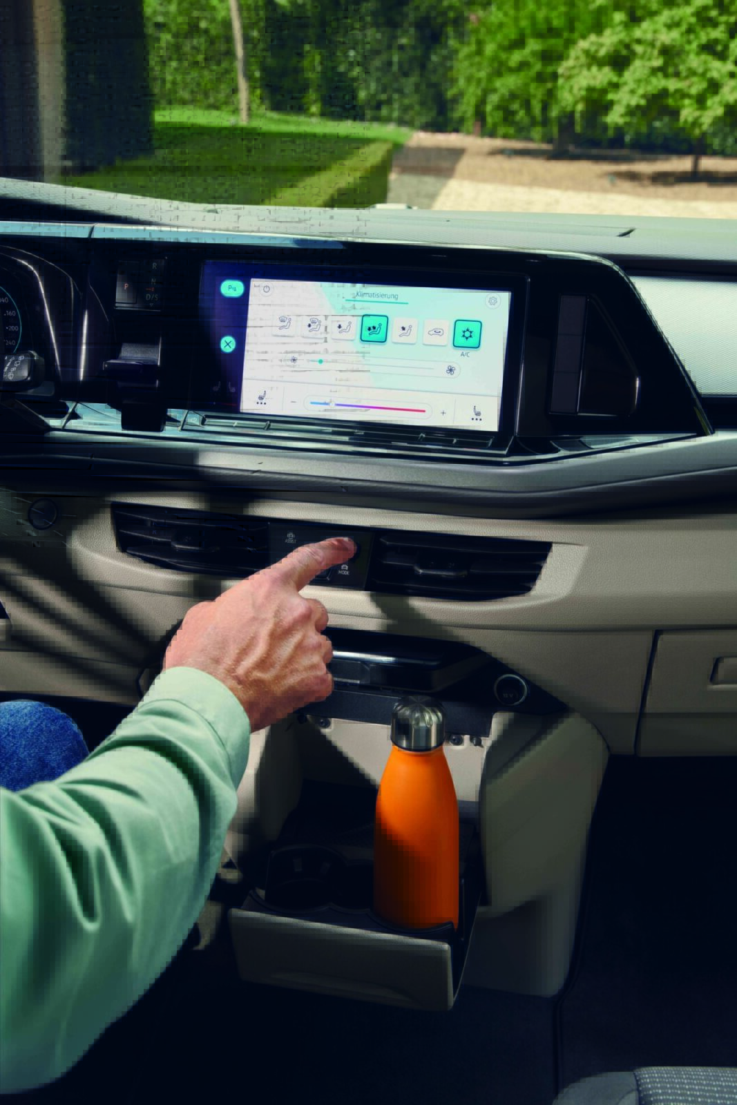 Multivan全車系皆採用Active Info Display大型互動式10.25吋全邏輯數位化儀錶,數位化顯示包括行車數據、音訊、通訊、駕駛輔助系統等設定,兼顧行車資訊辨識度及駕駛便利性。而數位觸控燈組控制面板及觸控式功能快捷鍵,具備直覺好操作易上手的特性,搭配位於中央出風口的5個觸控式功能快捷鍵,人性化的介面設計,方便駕駛快速進入常用的控制選單。此外,Discover Pro 10吋多媒體鏡面觸控螢幕音響主機,藉由數位觸控化的操作介面更為人性科技化,可透過觸控螢幕輕鬆操作和設定主要功能,並依照喜好設定首頁的快捷按鍵;主機下方的Touch Slider數位觸控列,可控制空調、音量及APP-Connect 手機多媒體連結等功能,讓您旅途過程中都可輕鬆操作毫不費力。
