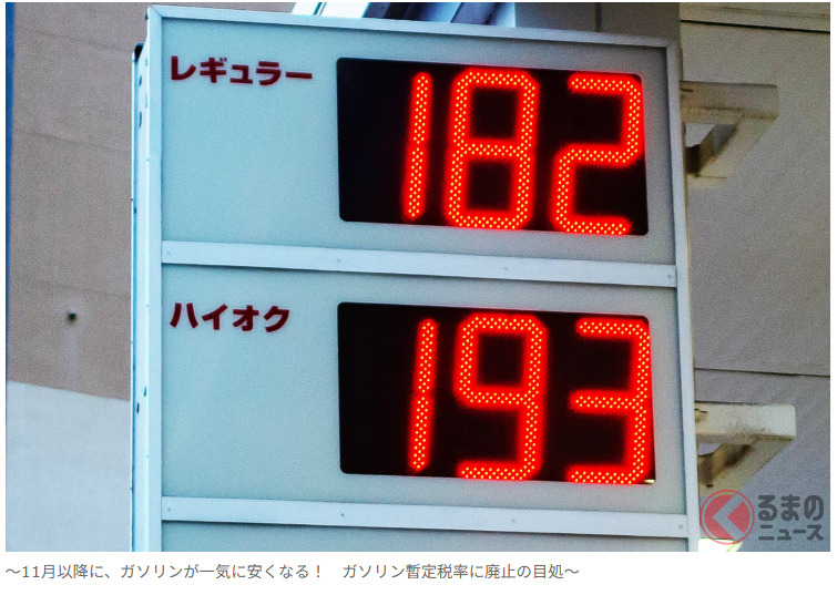 原文出處:「ガソリンが一気に安くなるのサイコー!」 25.1円も? 11月以降に!? 理由は「ガソリンの暫定税率」廃止!これまでの経緯は? 今後は?