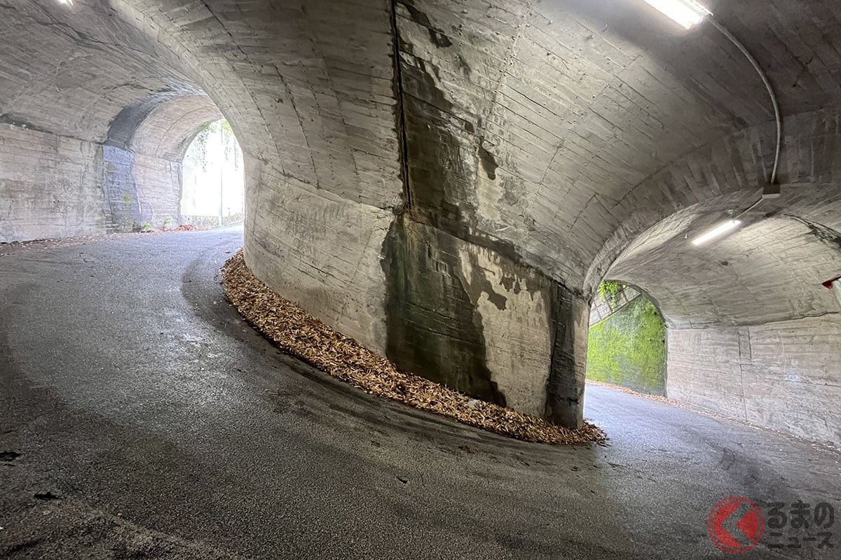 首先要介紹的,是 X 使用者「あたまがえらー(@AtamagaError)」分享的照片。畫面中可以看到隧道裡的道路蜿蜒轉彎,但仔細一看,坡度非常陡峭,甚至讓人覺得要靠雙腳走過去都不太容易。