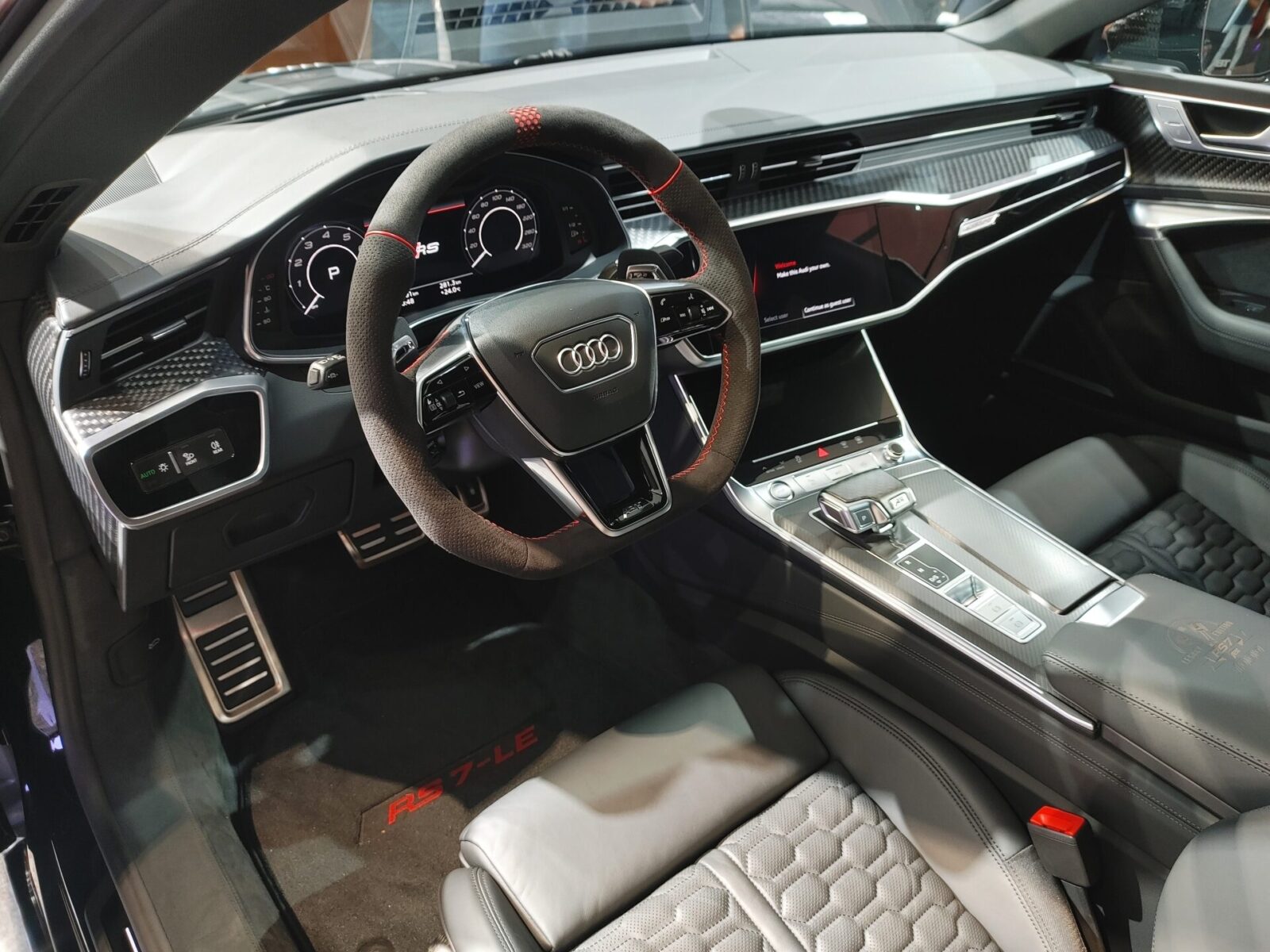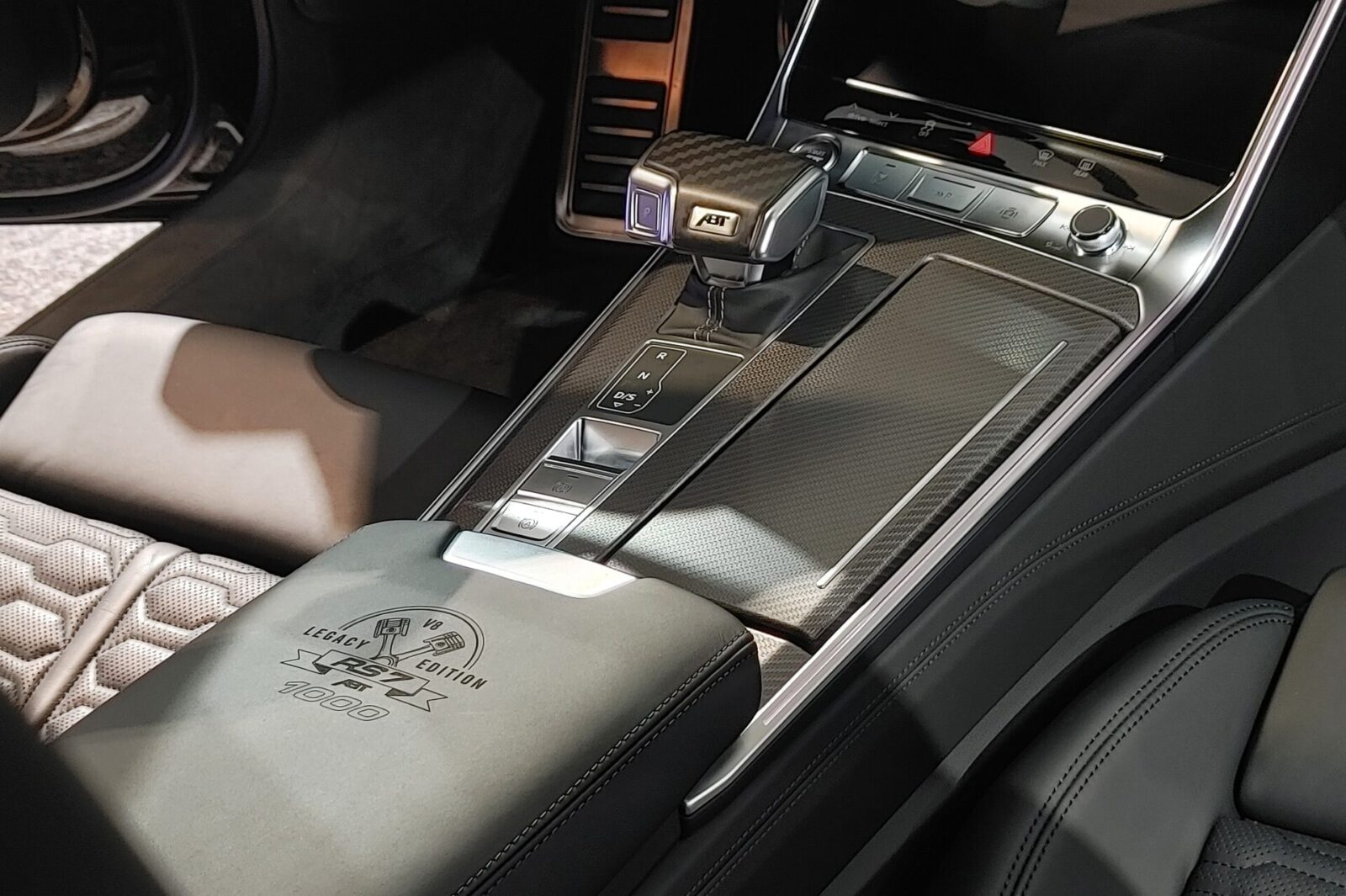 在外觀造型上,RS7-LE 1000換裝包括前下擾流、前保桿進氣口飾板、水箱護罩外掛飾板、引擎蓋飾件、後視鏡蓋、側裙、後保桿飾件與後擾流尾翼等一系列碳纖維強化件,搭配ABT高性能IR-22中央鎖止鍛造輪圈與直徑達102mm的ABT四出尾管,整體性能氣勢更上層樓;內裝部分則透過帶有12點鐘位置紅色標記的ABT Alcantara方向盤、大量碳纖維飾板、帶有RS7-LE繡字的跑車座椅與中央扶手上的專屬印記等配置,打造出獨一無二的跑格座艙。