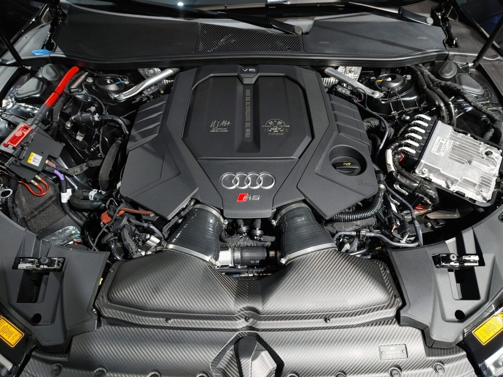 RS7 Sportback原廠所搭載的4.0L V8雙渦輪引擎已擁有630hp/86.7kgm強勁輸出,ABT在此之上升級渦輪增壓器、中冷器、油冷器與特製鍛造活塞,將最大輸出提升至820hp/99.9kgm,同時更導入IWI(Indirect Water/Ethanal Injection)間接水/乙醇噴射系統,可將水與乙醇混合液霧化後噴入進氣通道,透過ECU精準控制以有效降低燃燒室溫度,進而達到抑制爆震、提升空氣密度等效果,讓引擎在高負荷狀況下依然能維持穩定性能,峰值輸出也隨之來到1000hp/117.3kgm!