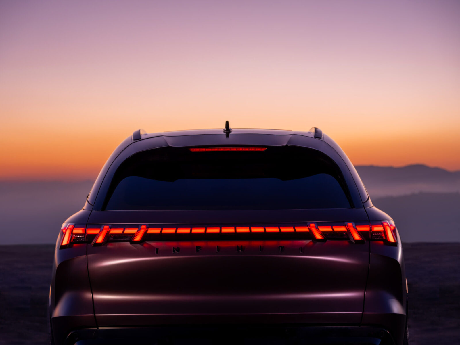 車尾設計則以乾淨、流暢的線條為主,沒有多餘裝飾,展現純粹的雕塑感。最引人注目的是一體式LED尾燈,內部設計靈感來自噴射機尾翼,帶有多道垂直結構,強化立體深度,也呼應整體的速度感。這種帶有航空元素的設計,不僅視覺上充滿張力,也突顯Infiniti對「非凡」的堅持。