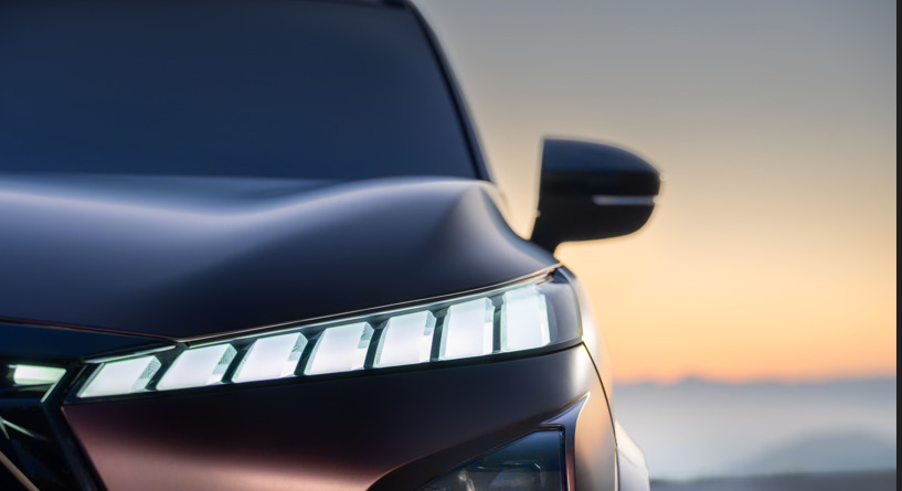 車頭橫跨全幅的數位鋼琴鍵LED日行燈,能演繹光影秀,呼應日本「Kabuku(非凡獨特)」精神,不僅凸顯寬闊車身姿態,也強調其未來感科技氛圍。