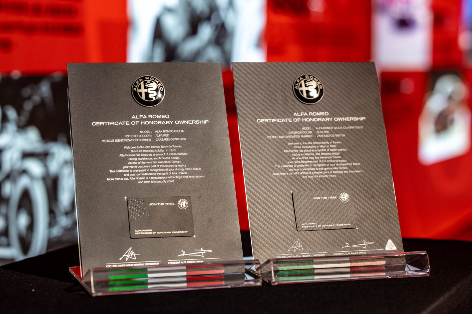- 「Alfa Romeo 專屬限量車輛收藏證書」