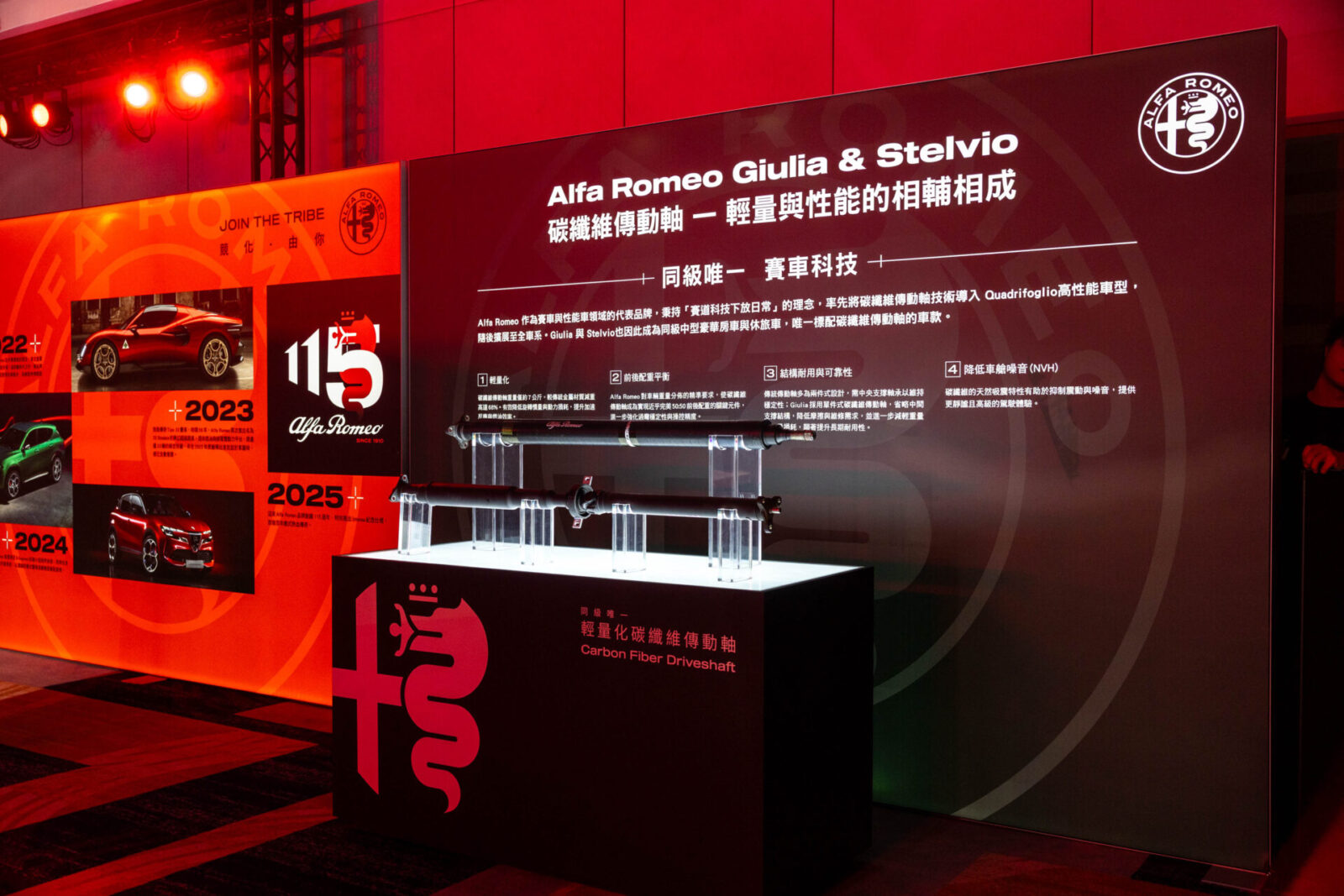 除此之外,Alfa Romeo 品牌發表會現場,Alfa Romeo 不僅以 Giulia 與 Stelvio 正式揭開台灣市場全新篇章,更特別安排全新世代跨界休旅 Junior 驚喜亮相,作為品牌未來戰略佈局的象徵。自全球發表以來,Junior 已在超過 38 個國家、累積超過45,000 張訂單,結合前衛設計語彙與純正賽道基因,被視為引領品牌邁向新世代的重要代表作。Junior 預計於 2026 年上半年引進台灣,其搶先亮相亦展現 Alfa Romeo 深耕台灣市場的決心。