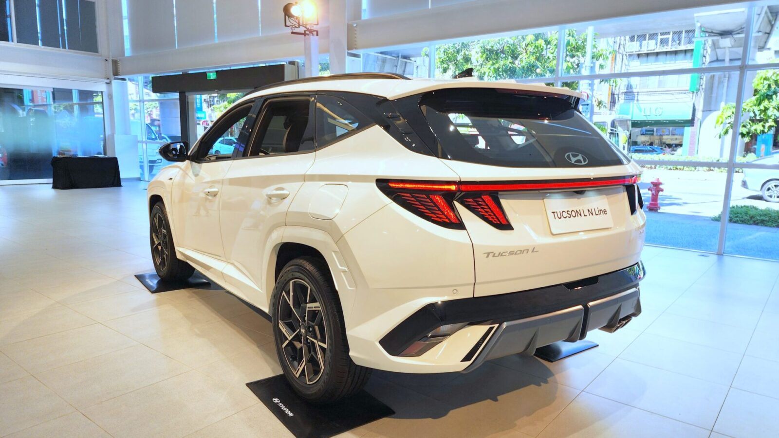 在外觀造型上,限量販售的小改款Tucson L N Line僅提供「極地白」單一車色,但透過專屬外觀套件來勾勒出與眾不同的運動跑旅氛圍,車頭採用鑲嵌有N Line專屬徽飾的黑化網狀水箱護罩,並搭配與車身同色的前空氣力學下氣壩,車尾部份則採專屬的空力分流後保桿以及雙出金屬尾管等配置,來造出低趴且蓄勢待發的動態視覺感。而車側同樣有著N Line專屬徽飾,並搭配新式樣 19吋專屬鋁圈,大幅強化了整體外觀的運動跑格。內裝部分除了擁有N Line專屬的跑格方向盤以及性能排檔桿等配置之外,還擁有採紅色縫線設計的類麂皮運動座椅,以及黑化車頂篷與金屬踏板等強調性能風格的配置。