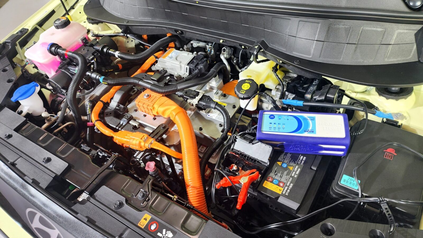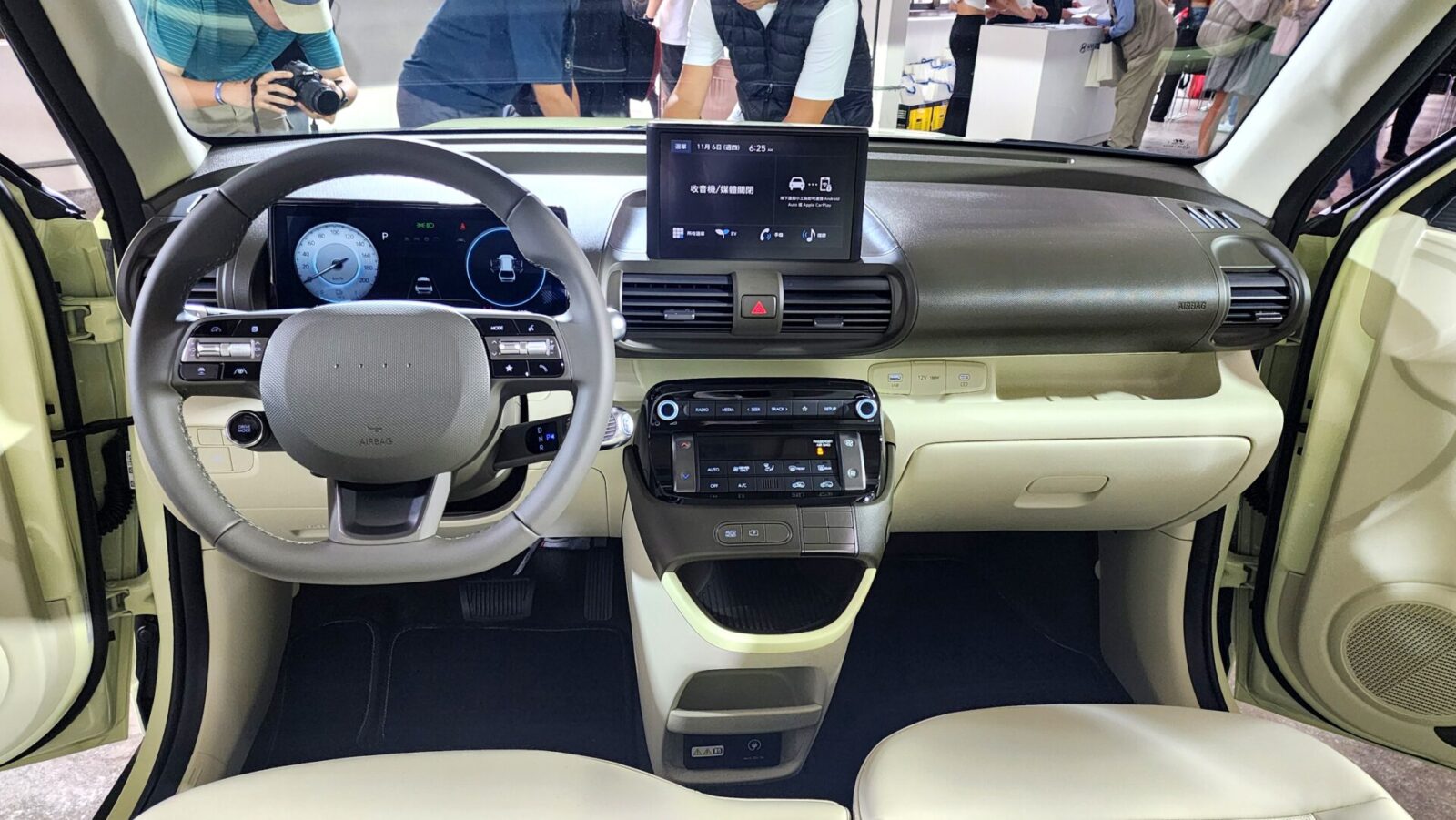 座艙設計則以年輕、跳色為主題,且採用對比色系鋪陳,讓空間氛圍充滿年輕活潑氣息。配備部分,10.25吋數位儀錶、8多媒體螢幕(無線Apple CarPlay/無線Android Auto)、SBW旋鈕排檔系統、多重駕馭模式、三段式動能再生制動系統、單踏板模式、恆溫空調、倒車顯影系統、ESP+Auto Hold以及Hyundai SmartSense先進安全輔助系統等皆為全車系標配,EV400-B以上車型更有V2L外接供電轉接器與V2L車內供電系統等。
