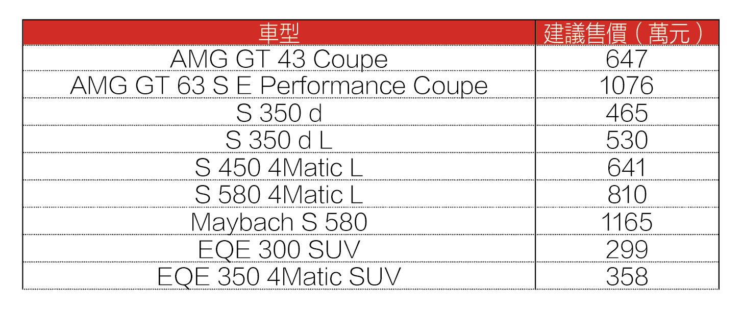 台灣賓士自今年3月起展開多波產品升級操作,本次2026年式則聚焦於品牌高階旗艦車系,包含性能旗艦AMG GT Coupe、豪華典範S-Class,以及純電SUV代表EQE SUV,全面展現Mercedes-Benz在數位科技、駕馭感官與豪華體驗的最新進化。值得一提的是,前述2026年式車型建議售價均維持原有水準,不過標配與選配內容可能會有變動,有意入主的消費者還需多加確認。