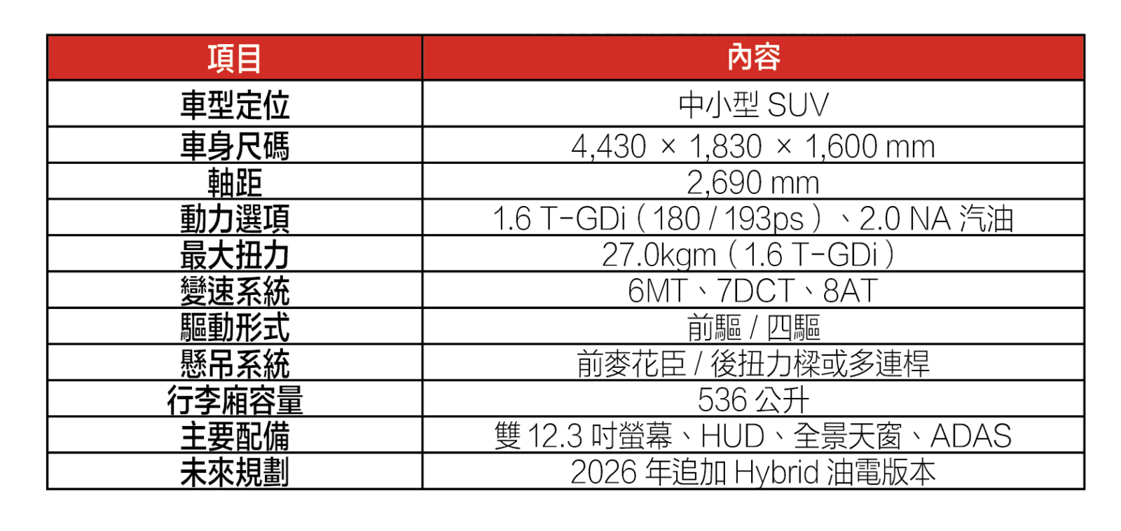 在數位化體驗方面,Seltos導入AI語音助理與OTA線上更新,讓車輛功能可持續進化。數位鑰匙2.0可透過手機進行解鎖與共享,便利性大幅提升。行李廂標準容量達536公升,並具備雙層可折式底板,搭配模組化收納配件,對於家庭或戶外活動都相當實用。原廠也預告2026年將追加油電混合動力版本,並支援V2L外接供電功能,進一步拓展使用情境。