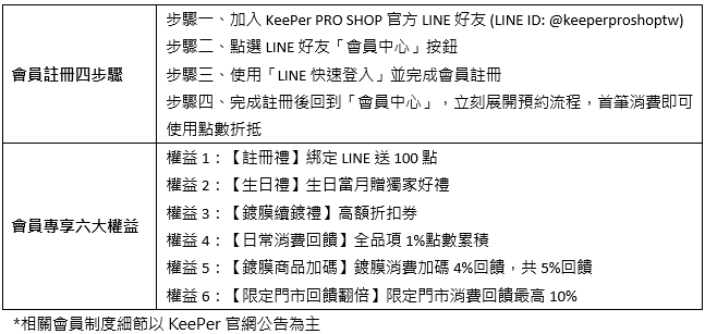 KeePer PRO SHOP會員計畫