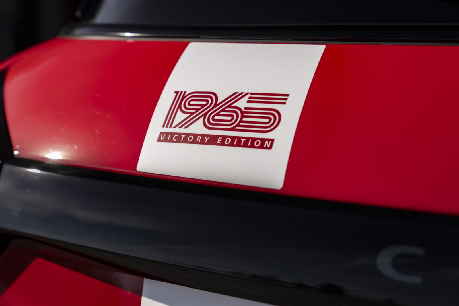 此次推出的1965 Victory Edition特仕車外觀採用經典Chili Red車色,與純白車頂/後視鏡外蓋形成鮮明反差,同時車側追加大型車身號碼「52」白色車貼、引擎蓋上的白色賽車條紋加入賽車編號「AJB44B」浮雕字樣,甚至還換上專屬造型的懸浮式輪圈蓋與帶有「52」字樣的輪圈氣嘴蓋,對於細節講究的程度可見一斑。將視線往車身後方看去,C柱頂端低調地加入1965蒙地卡羅拉力賽樣式貼紙,尾廂蓋上呼應車頭引擎蓋的白色賽車條紋亦整合1965 Victory Edition特仕圖騰,可說從任何角度都不會錯認。