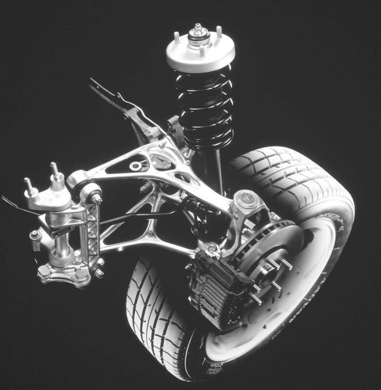 90年代的雙A臂輝煌時期進入90年代,很多日系的性能車採用雙A臂懸吊,主要原因在於結構的高剛性和能有效的處理過彎時帶來的負載。比麥花臣較多的連桿設計,可以很輕易調校懸吊的運動方向,來優化車輪的動態。早期F1也採