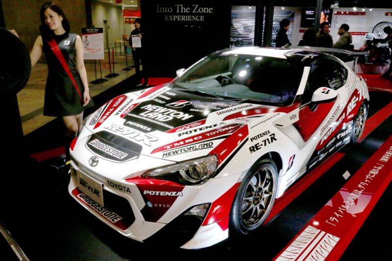 世界最大廠-BridgestoneRE-71R領軍展出身為全球最大的輪胎廠,加上又占有主場優勢的情況下,Bridgestone輪胎每年的東京改裝車展中的攤位規格可不輸給車廠,今年也不例外,會場中陳列的多部車款提高聲勢外,也找