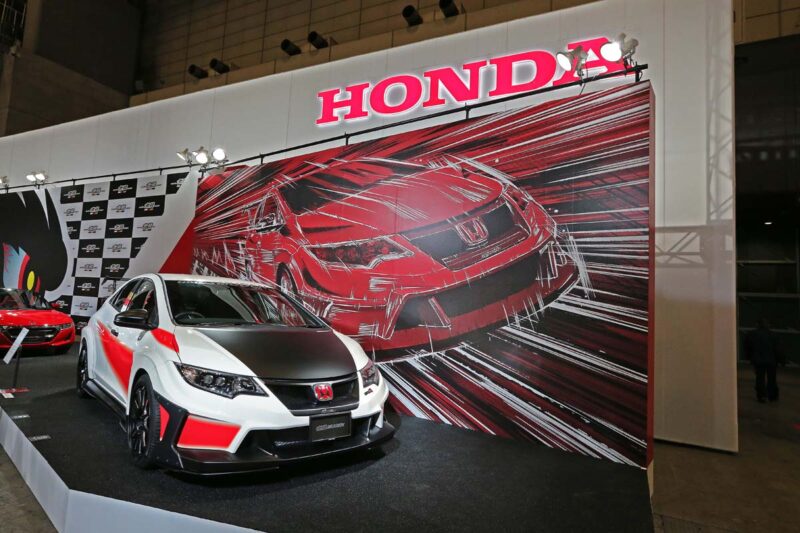 Modulo Civic Type-R低調的改裝選擇除了Mugen有展出Civic Type-R的改裝實車外,Honda直營專屬改裝品牌Modulo的攤位內也展出了另外一部Civic Type-R,雖然保留著多數原廠造型,但是看起來就是有別於原廠Type-R,更有質感