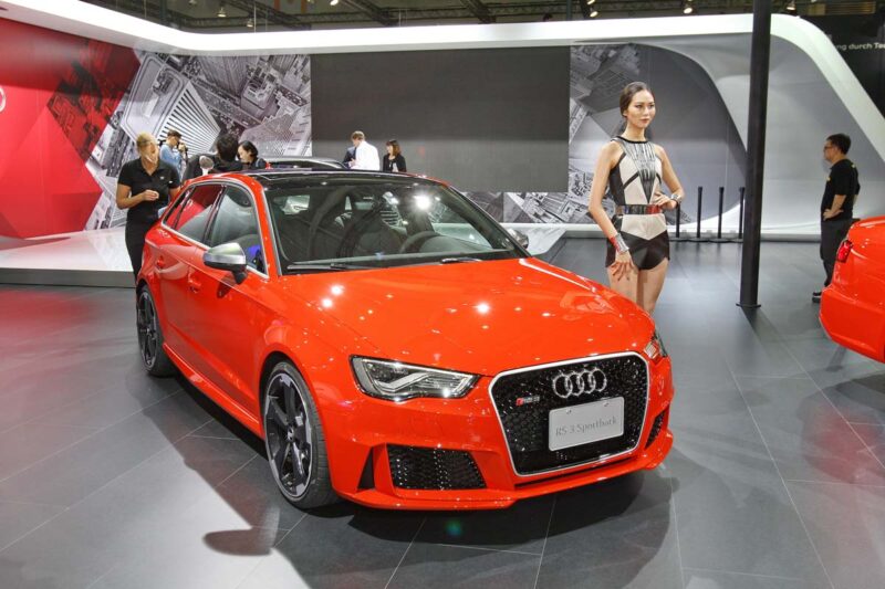 Audi RS 3 Sportback性能鋼砲大戰近一兩年幾乎是性能鋼砲大戰,而今年車展Audi再推出更高性能的RS 3 Sportback。銳利的LED頭燈加上大面積網狀水箱護罩,碩大且造型誇張的兩側進氣孔、水箱護罩內的RS 3 Logo,讓人一眼就能認