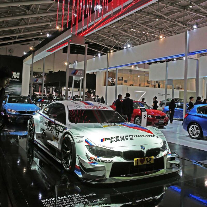 BMW M4 DTM站台-節能X5 xDrive40e亮相自BMW重返DTM戰場後,隨即以破竹之勢搶盡車迷視線,雖然2015年並未如願搶下車手以及車隊積分榜冠軍,但BMW展區所秀出強勁有力的M4 DTM,依舊是值得賽車迷一看的車款。基於賽例,現行