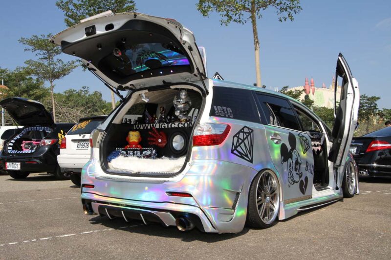 反傳統跌破眼鏡 Hellaflush Toyota身為國內銷售量最好的汽車品牌-Toyota,一直以來都是冷門改裝車,而在海拉風領域中似乎也是如此,當天到場參與的車款數量與種類都不多,改最大有幾部二代Wish,走的路線比較像是VIP或音響實裝車,