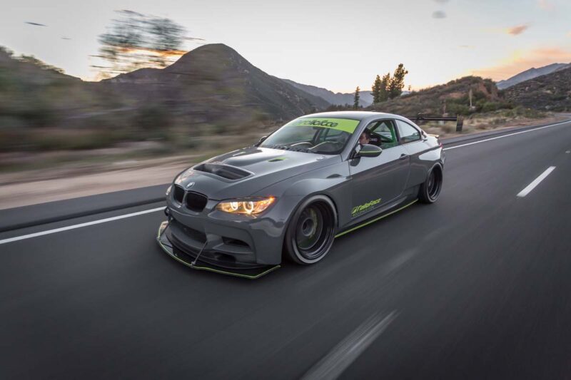E92寬體作品再一發RF GT3 Widebody Kit其操刀改裝者為美國Rollo Face,這間原本只是專門生產製造煞車制動系統的改裝品牌,似乎打算藉由這次的SEMA將產品觸角延伸到空力套件上,而且第一次就超寬體套件。從整體套