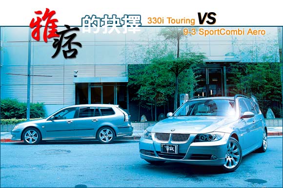 雅痞的抉擇 330i Touring對9-3 SportCombi Aero文:黃翔麟 圖:陳汎斌 設計:李妍忻一般對性能房車的印象為動力、操控性佳的車款,如果加上旅行車的外型與實用性,是不是會犧牲駕駛樂趣?本文的兩位主角都帶有濃厚的性能血統,長久以來給車迷們感覺,並不會因為加進實用性而有所妥協。一部是來自以操控樂趣為造車理念的家族,一部則是高速公路殺手的繼承人,在價格與車輛類型相近且去除品牌情結的狀態下,哪一輛才是最適合的座駕將是一