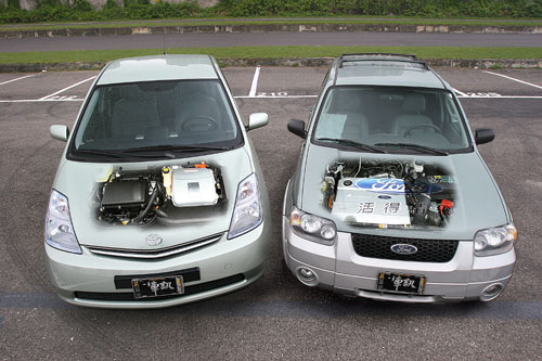 節能先行者 油電混合唯二對戰Ford Escape Hybrid vs. Toyota Prius文:黃翔麟 圖:陳汎斌面對日益減少的原油存量,全世界對替代能源的期待逐漸擴大,在還無法量產這類車輛前,油電混合是當下節省油耗最佳方式之一,也是環保車輛類別裡接受度最高的一種。之前國內只有Ford Escape一輛Hybrid車型,今年三月和泰汽車引進Prius之後,有意購買的消費者多了一種選擇,雖然兩者分屬不同車種,但目的同為節省油耗,我們就以技術面為出發點,針對其設計做一次徹底比較。 ▓ 油電混