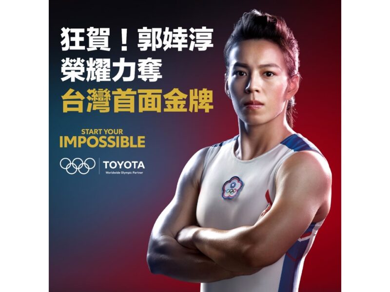 狂賀!TOYOTA贊助選手郭婞淳勇奪東京奧運金牌! 號召全民為李智凱大力應援 為台灣加油我們一起來!狂賀!TOYOTA贊助選手郭婞淳於2020東京奧運舉重女子59公斤級,以抓舉103公斤、挺舉133公斤,總和236公斤勇奪台灣本屆奧運首面金牌,三項成績皆創下奧運紀錄,且完成世錦賽、亞錦賽、世大運、亞運和奧運金牌「大滿貫」壯舉,舉重生涯攀上顛峰