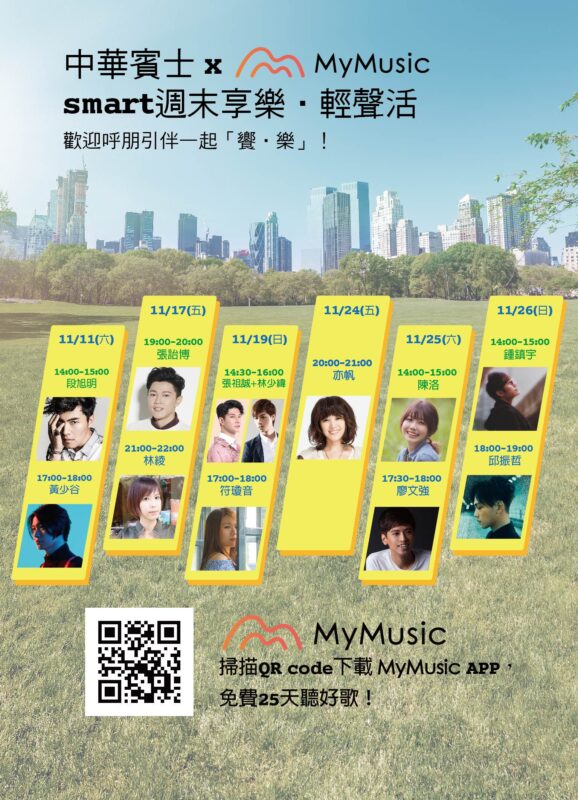 中華賓士xMyMusic合作現場Live 符瓊音 亦帆 邱振哲 黃少谷輪番上陣!秋日舒適的氛圍是否讓人覺得格外慵懶?趁著週末的休息空檔,找個可以放鬆的地方充電吧!中華賓士將自11月11日至月底,每週週末在信義區#smartPopUpTaipei品牌概念館推出中華賓
