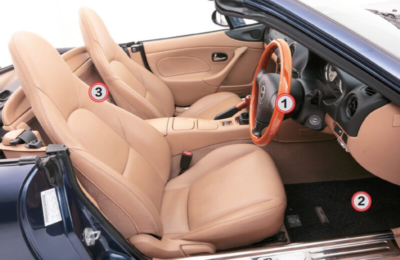 怎麼看中古車的車況?Part 3 賞車必看Check Point:內裝要仔細觀察內裝的細節,因為每次開車不得不看到它。如果內裝有問題,每開一次就看到一次會很後悔。此外不能忽略車內異味:煙味、寵物的味道、或其他異味(例如空調異常等原因),這些都不會被註明在網路廣告