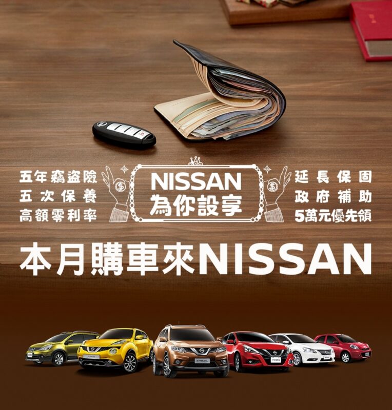 NISSAN 限時推出「為你設享」超值購車優惠NISSAN在台深耕60年,持續致力於提供優質產品及感心服務,獲得台灣廣大消費者的支持與肯定,裕隆日產汽車為感謝消費者支持與愛護,自即日起至11月底止,特別推出NISSAN「為你設享」優惠