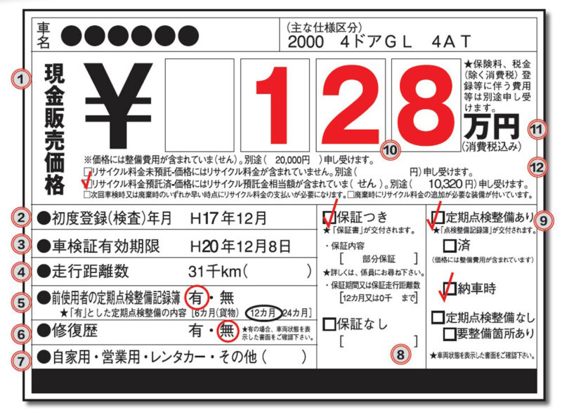 怎麼看中古車的車況Part4-購車資訊怎麼看?在鄰國日本,中古車商裡所有車輛都掛著一個價格告示板。標明車價以及跟車價有關的所有因素。除了車價之外,稅金、保險、手續、整備等費用的標準都事先確認好,提供給消費者看。日本的中古車價太透明,而且很多