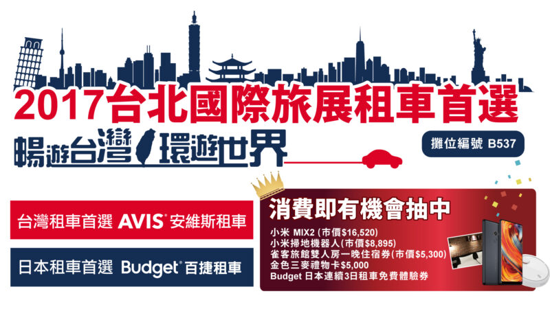 兩大國際租車品牌破盤大優惠,單日租車還不到1000元!!!2017年ITF台北國際旅展以「來遊台灣,趣看世界」為主題,於10月27日至10月30日世貿一館盛大開展,因應去年搶購熱銷,全球最大汽車租賃集團AVIS Budget Group首度以AVIS安維斯租車及Budget百捷租車雙品牌參展,推出空前優惠,邀請消費者輕鬆享受自