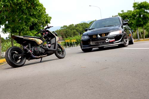 零四參賽車小閱兵-四傳渦輪增壓 兩輪異種植入對於加速來說具有四輪傳動渦輪增壓優勢的EVO,就算在四輪界也都能稱之為頂尖鬥士,鑄鐵材質引擎本體更是信賴度極佳,稍作改裝後即可滿足大多數車主。除了競戰外目前最受年輕人喜愛的就是機械結構更加外露的BWS…