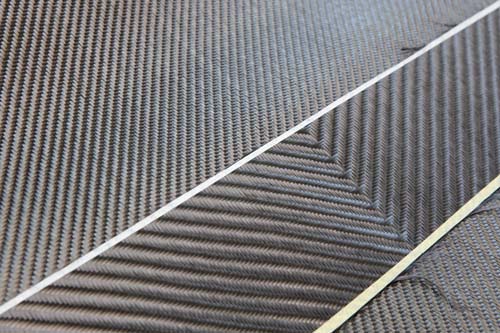 碳纖維熱壓成型有別於手工披覆,就連使用的原料也不盡相同。手工披覆所使用的碳纖維布就是一般布料,可摸到纖維絲、觸感軟趴趴,但熱壓成型可就不同了,其所使用的碳纖維布已經加入「Epoxy」(環氧樹脂),可使碳纖維 -