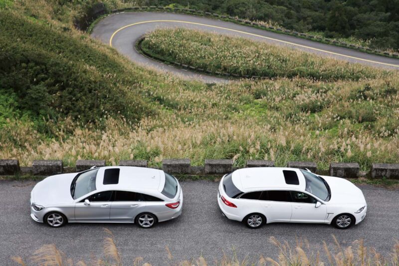 華麗獵跑競豔伸展台 M.Benz或Jaguar?外觀經過小改修飾的M.Benz CLS Shooting Brake較以往顯得更為精緻,而日前登場的Jaguar XF Sportbrake,其華麗優雅帶點運動的外觀與CLS Shooting Brake有異曲同工之妙,因此我們將這兩款車型安