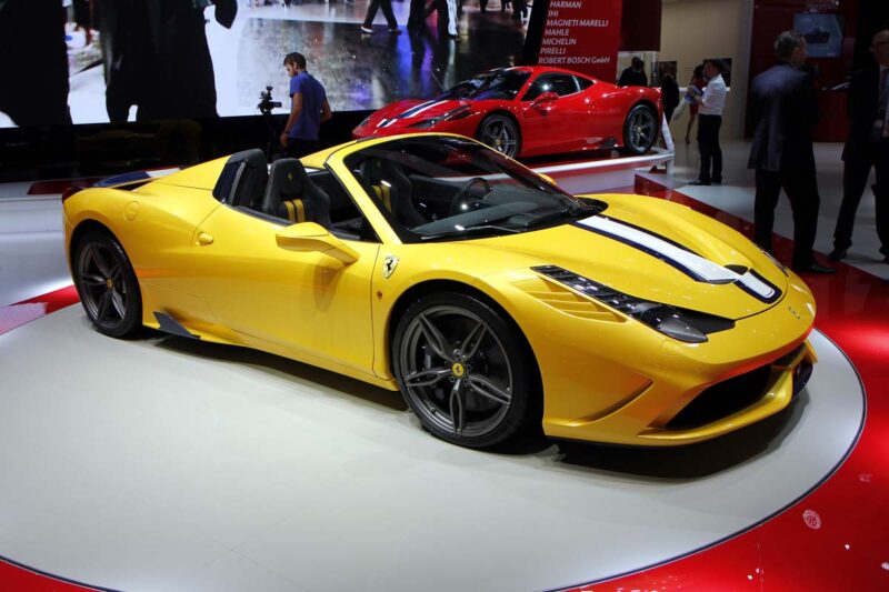 Ferrari 458 Speciale A 最強敞篷躍馬巴黎車展甫開幕,Ferrari便發表了458 Speciale A(Aperta)限量版本。這部法拉利最強敞篷跑車,其動力方面搭載的是Coupe版經過升級的4.5升V8自然進氣引擎,最大輸出可達到605hp/55.1kgm。至於車重方面,雖然多了敞篷車